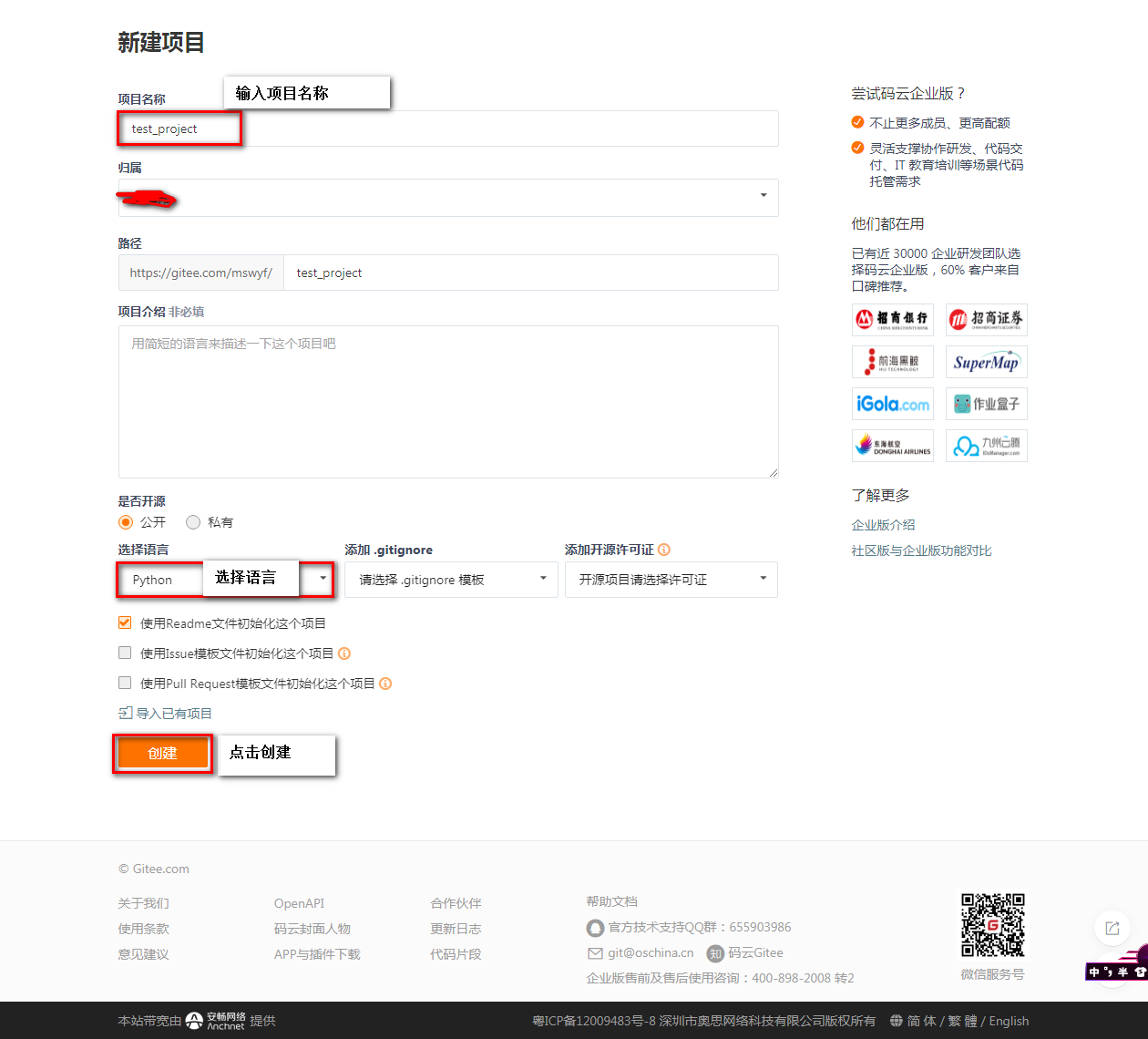 (4) 将秘钥添加到码云的shh秘钥中,并新建项目