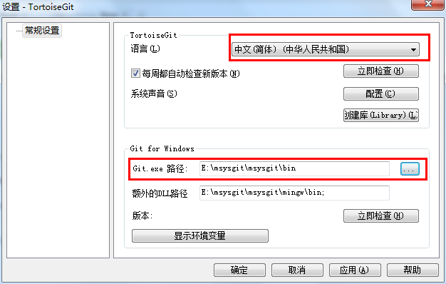 (5)打开TortoiseGit的Settings,我们首先要设置上面安装msysGit的目录和中文设置。