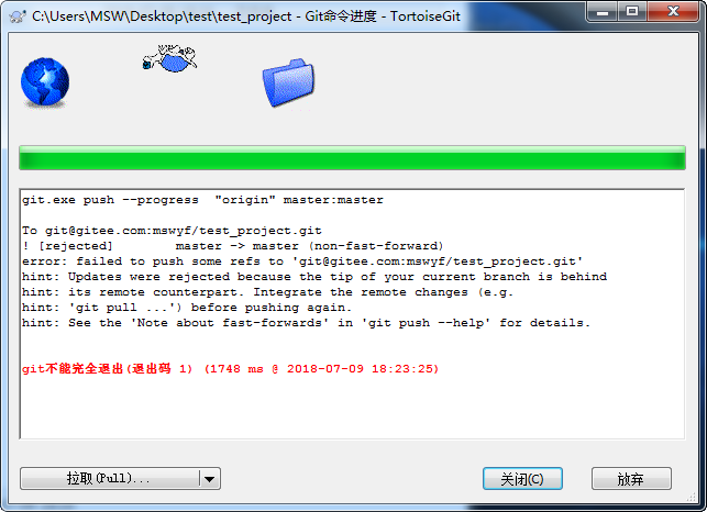 11,我们打开码云选择创建的test版本库,就可以看到我们刚才提交的文件了,获取的话直接拉取(Pull)。
