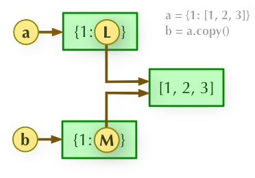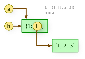 **b = a:**赋值引用,a 和 b 都指向同一个对象。