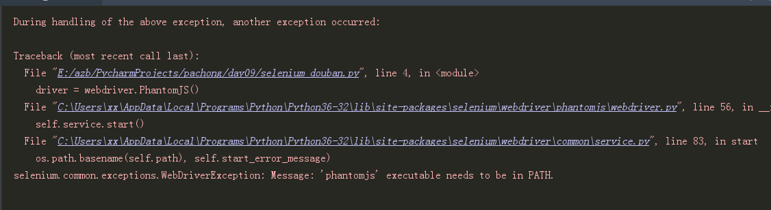 将PhantomJS路径添加到环境变量中 或者在创建浏览器对象是指定Phantomjs路径