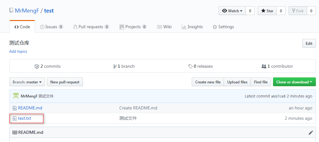8.此时,再次到github个人主页上就可以看到上传的文件了