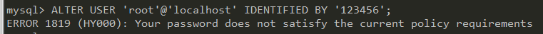 1 | ALTER USER 'root'@'localhost' IDENTIFIED BY '123456'; |