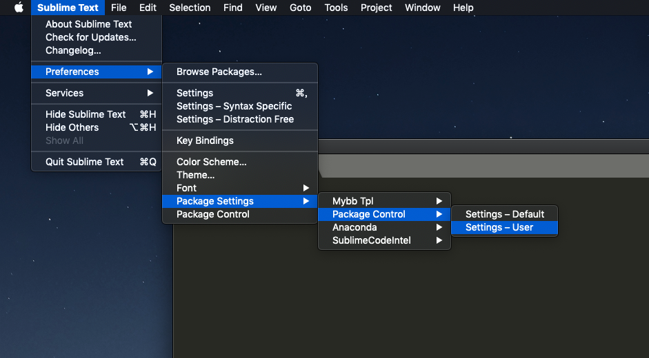 mac的sublime安装目录默认为 /Users/{用户名}/Library/Application Support/Sublime Text 3/