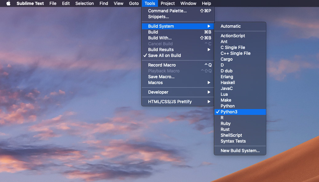 Mac Sublime Text使用python3运行脚本(command+b)-不止于python