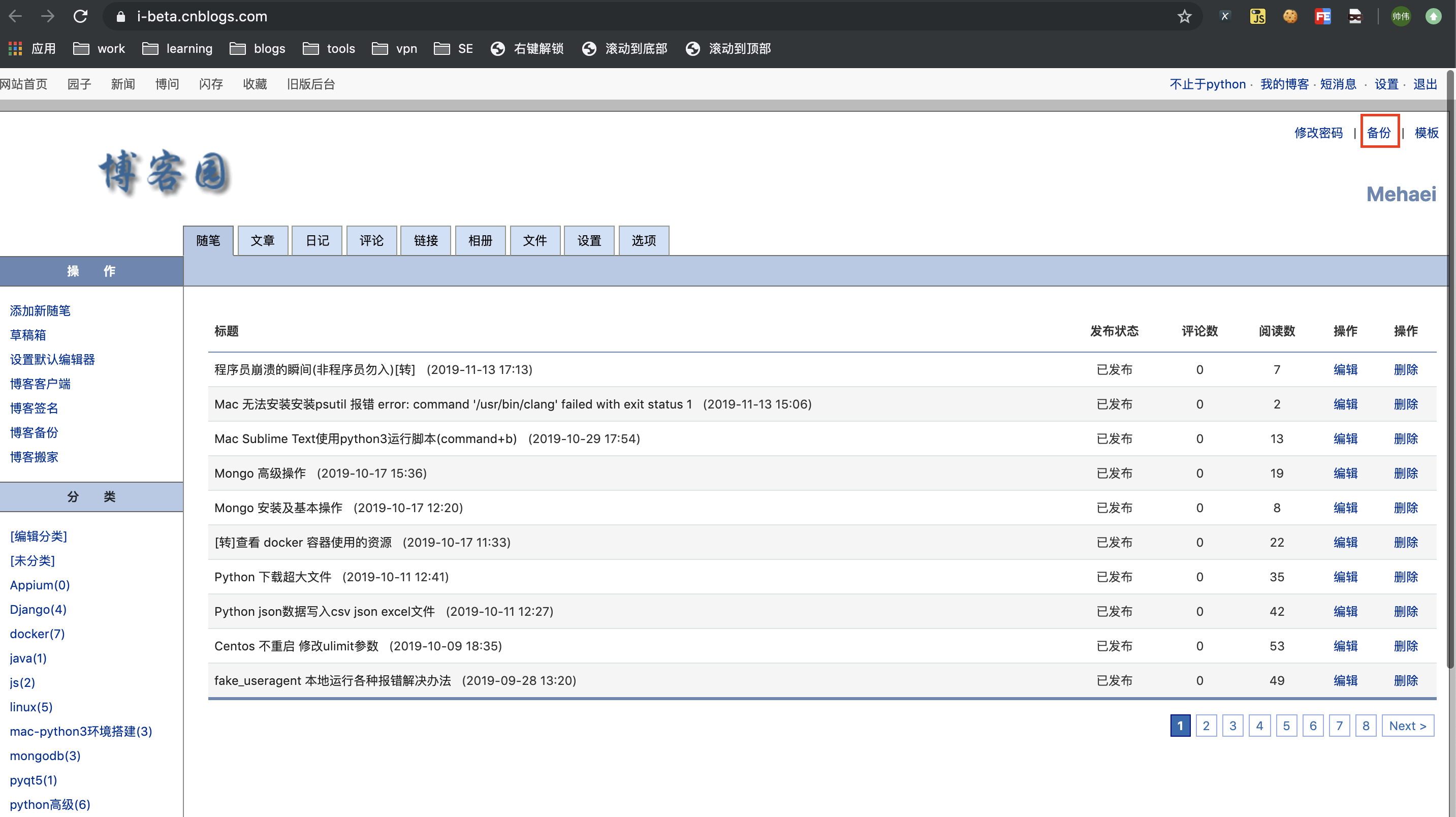 导出博客园所有的博客数据