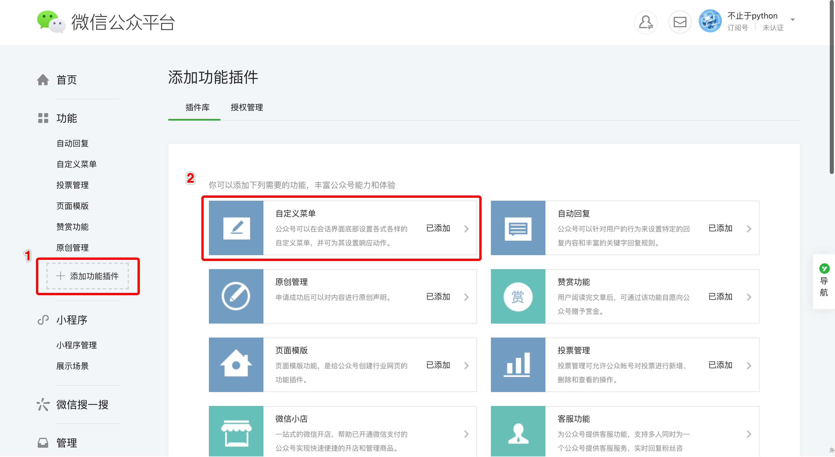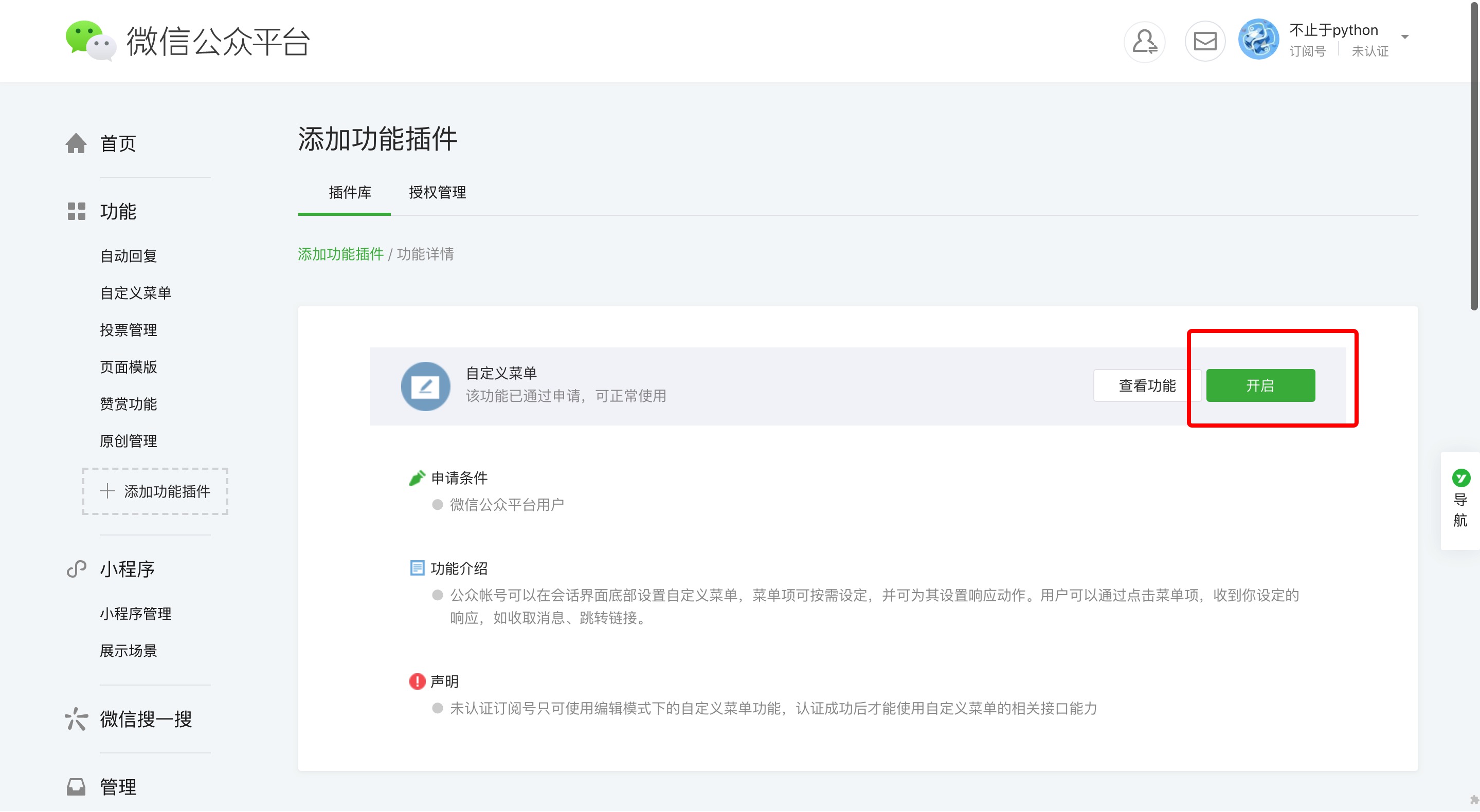 个人的微信公众号无法认证, 而未认证的又无法使用开发者自定义菜单功能