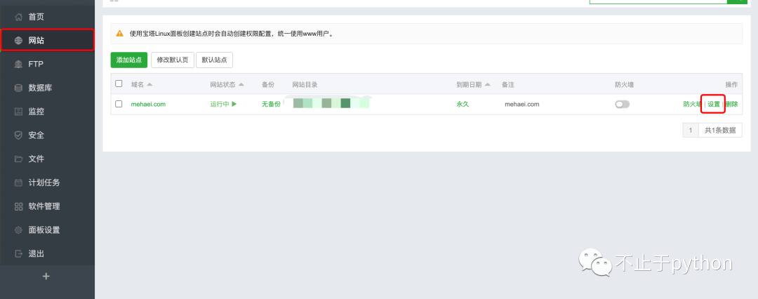 - 登录宝塔控制台 -> 网站 -> 点击对应的网站[设置]