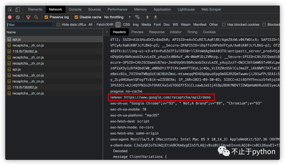 * REFERER: 网站验证的referer, 找到xxxx/api.js的请求