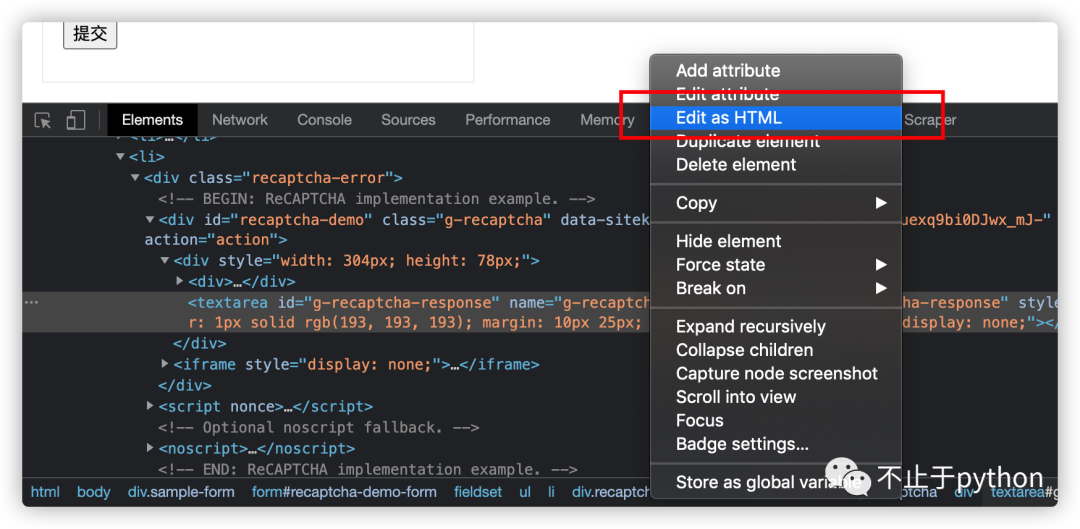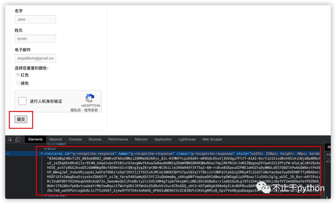 打开控制台, 搜索 g-recaptcha-response的文本框元素