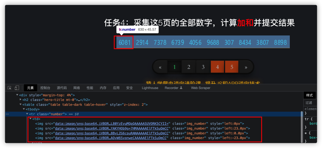 任务4:采集这5页的全部数字,计算加和并提交结果