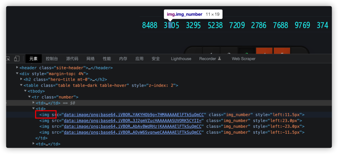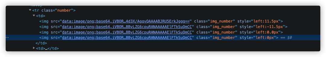 可以看到的是, 相同图片的img数据的base64是相同的, 这样就可以把0-9的数字和对应的base64数据来做一个映射