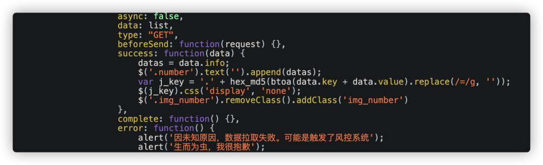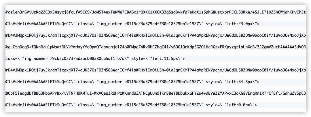 可以看到这里是用请求返回的数据中的key+data, base64编码然后md5了一下, 然后将符合这个类名的元素添加了一个display none的属性, 也就是不显示的属性, 这样就导致了元素和页面上的数字位数不一致