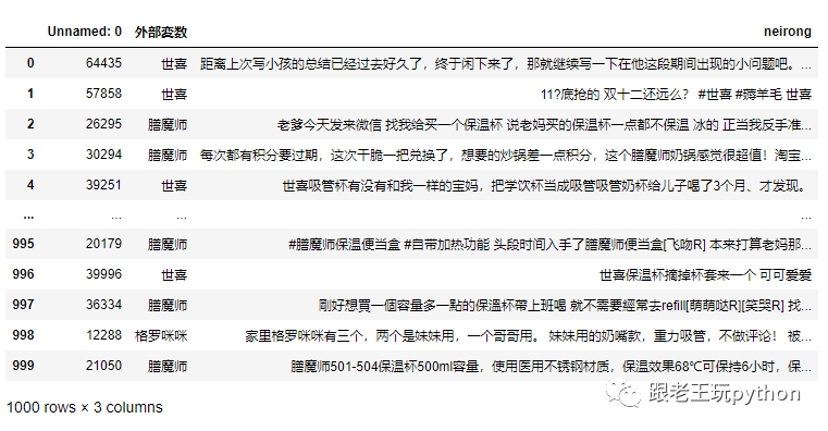 在上述示例代码中,apply_parallel() 函数中使用了 Python 内置的 multiprocessing 模块创建了一个进程池,并将每一行数据都传递给一个函数进行处理。在这个函数中,将 DataFrame 的neirong进行分词,然后将结果保存到新的列表中。