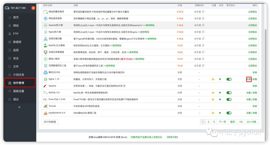 登录宝塔管理界面, 当然也可以直接在服务器命令行操作, 以宝塔页面举例