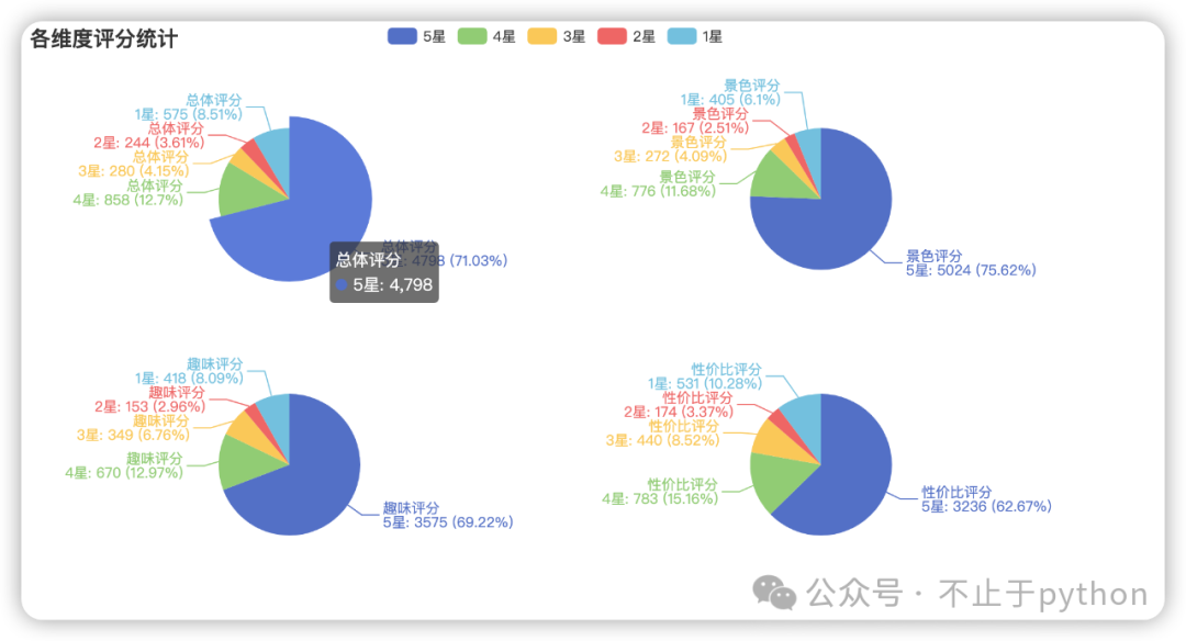 - 五星评价占比高达71.03%,总体评价较为正面,但仍有8.51%的游客给出一星评价。
